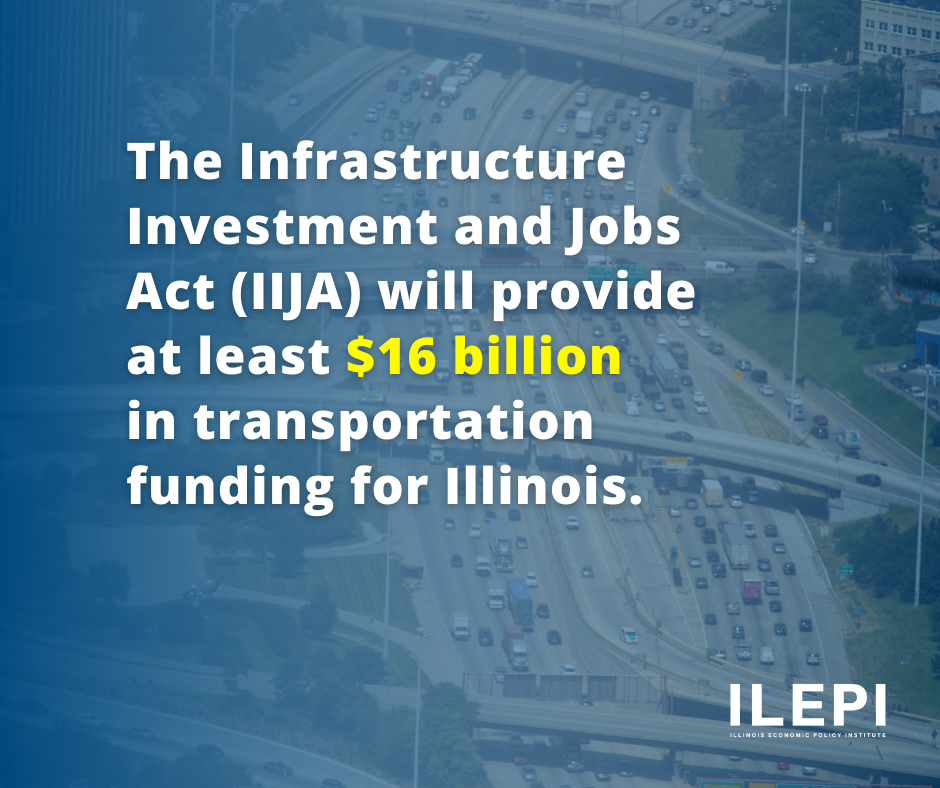 The IIJA was signed into law by President Biden on November 15, 2021. The IIJA makes $1.2 trillion in funding available for a variety of infrastructure improvements, including transportation, energy, water, and broadband systems. The bill includes $550 billion in new federal funding, in addition to reauthorizing highway, public transportation, and rail programs for five years. The ILEPI Policy Brief solely focuses on transportation funding, and is the most comprehensive look to-date on the share that Illinois is estimated to receive.