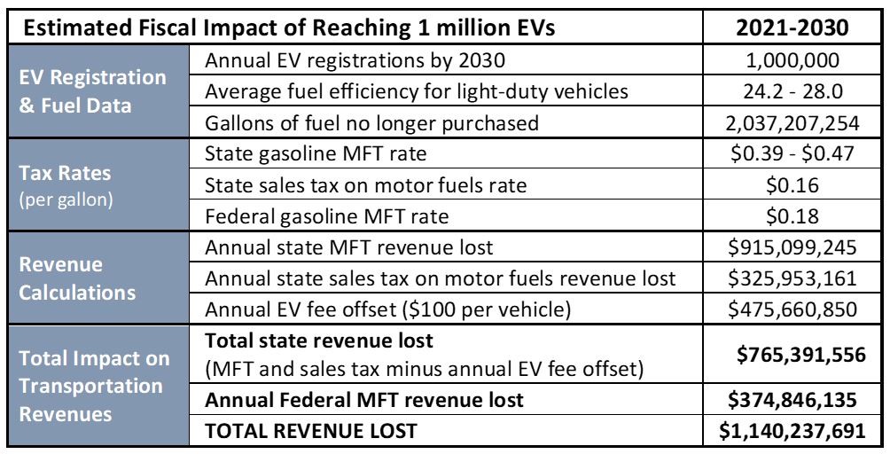 “While the expansion of EV infrastructure will create thousands of good-paying jobs across our state, it will ultimately translate to less spending on motor fuels, at a ten-year projected impact of $1.1 billion to transportation revenues,” Tyler said. “Additionally, the combined effect of both EVs and improved fuel economy, while good for consumers struggling with rising prices and good for the environment, will have a $4.3 billion impact on the overall fuel consumption that generates transportation project revenue over the next decade.”