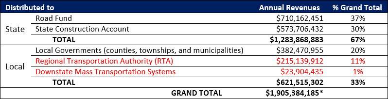 Of the $1.9 billion in new annual transportation funding generated by fee increases in Rebuild Illinois, approximately 12% is dedicated to transit agencies, as summarized below.