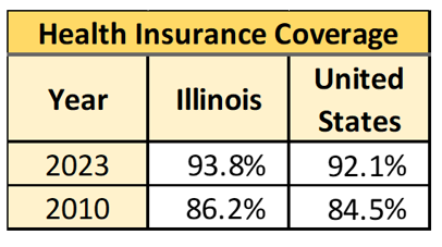 - Through the expansion of Medicaid under the Affordable Care Act, Illinois has reduced its number of residents without health insurance by nearly 1 million, a 56% decrease.