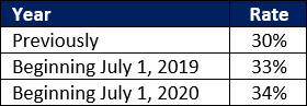 The previous tax was at 30% of net terminal income. That rate increased on July 1, 2019 and July 1, 2020, as shown below. All proceeds from these increases are deposited into the Capital Projects Fund.